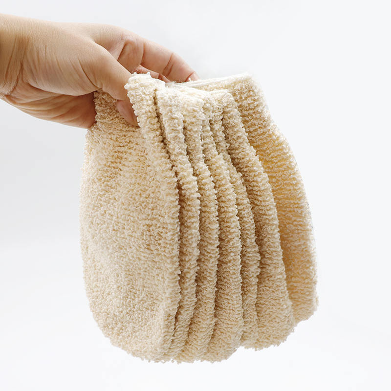 Tá tuáille te scrobarnach de ghaineamh garbh agus de ghaineamh mín gach ceann acu a fhiúntas, Roghnú tuáille folctha scrobarnach is mó a fheiceáil fós do riachtanas. Má tá tú ag mothú salach, ba chóir go ndéanfadh tuáille folctha grit an cleas, ach mura bhfuil tú ag mothú salach, d'fhéadfadh tuáille folctha gaineamh fíneáil a bheith ina rogha níos fearr. Mar sin, nuair a roghnaímid tuáillí folcadáin, b'fhéidir gur cheart gaineamh garbh nó gaineamh mín a cheannach lena níochán ar bhealach níos glaine. Níl ach feidhm amháin ag éadach níocháin, is é sin deannach a scrobarnach, is é sin, exfoliate. Is modh fisiceach é, agus fiú mura gcuireann tú aon fhórsa i bhfeidhm, beidh sé fós díobhálach don chraiceann. Is féidir leis bacainn chosanta an chraiceann a bhriseadh síos go héasca, agus mar sin conas nach féidir le craiceann sicín níos mó agus níos tromchúisí, cén fáth nach n-úsáideann táirgí exfoliating, scrobarnach nó salainn folctha, is féidir a exfoliate?
