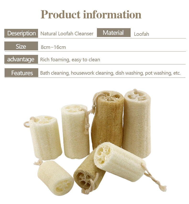 Spúinse Glantacháin Comhlacht Inchomhdhéanta Nádúrtha Spúinse Loofah Cistine Ilchuspóireach