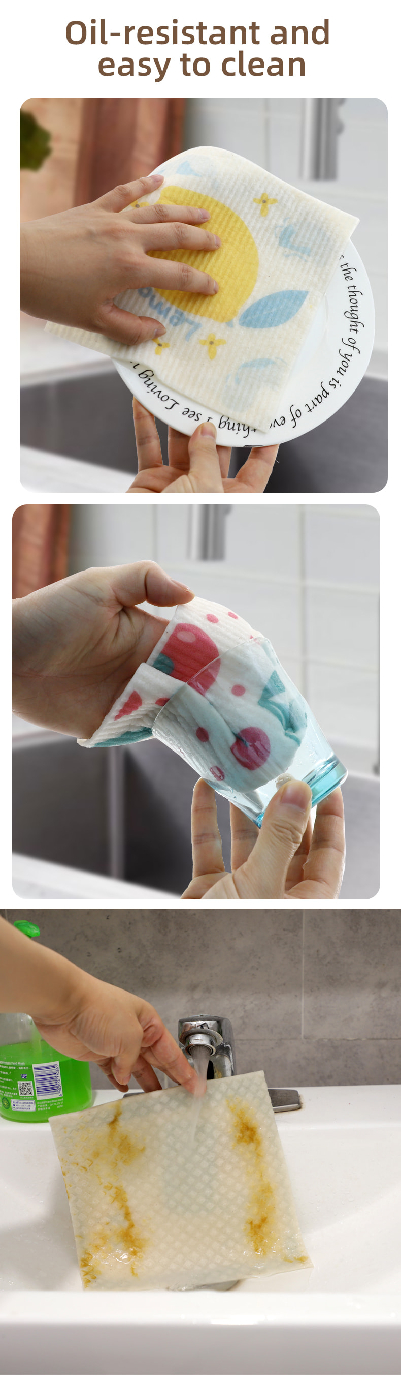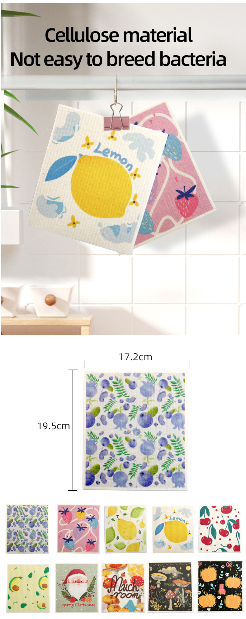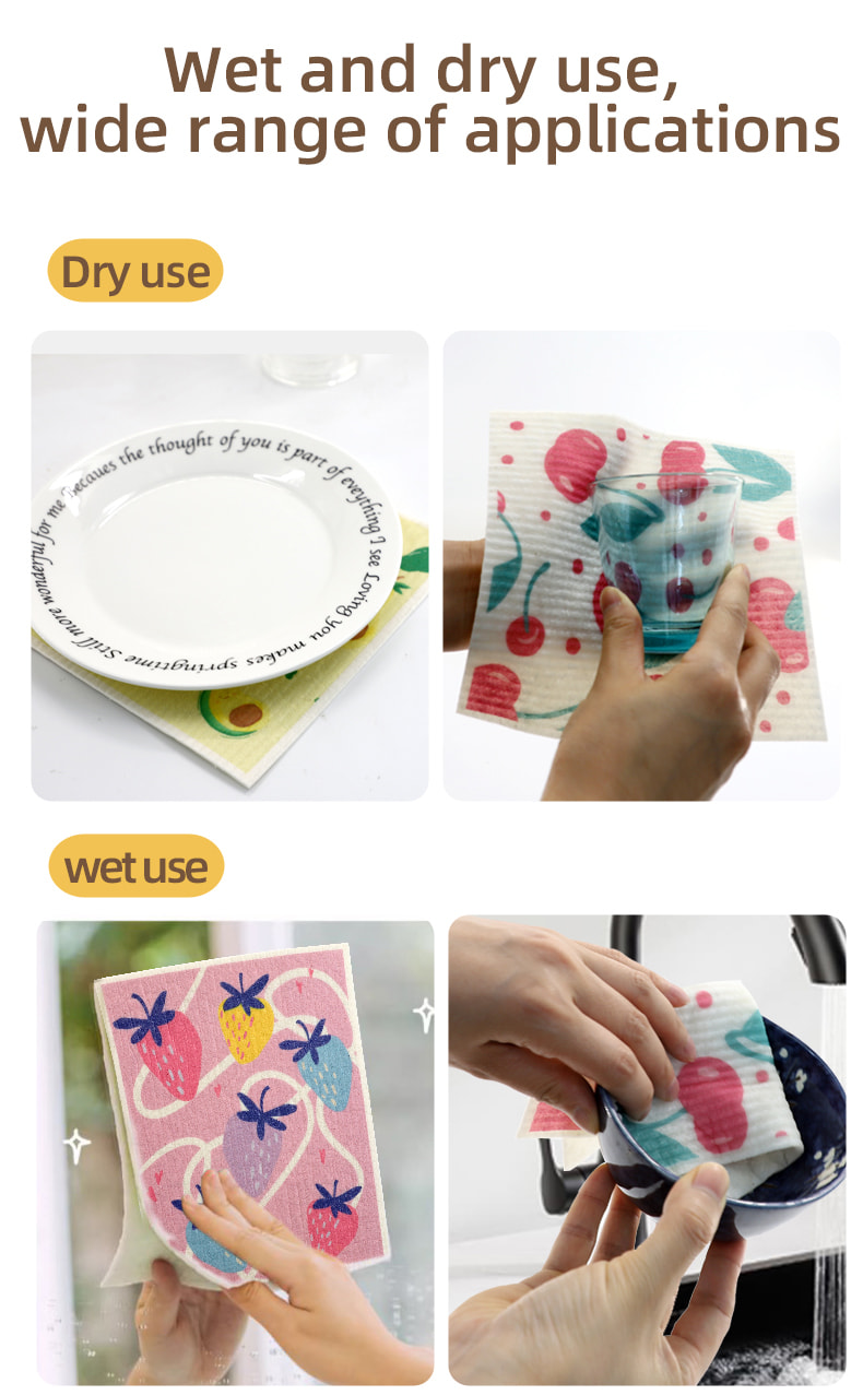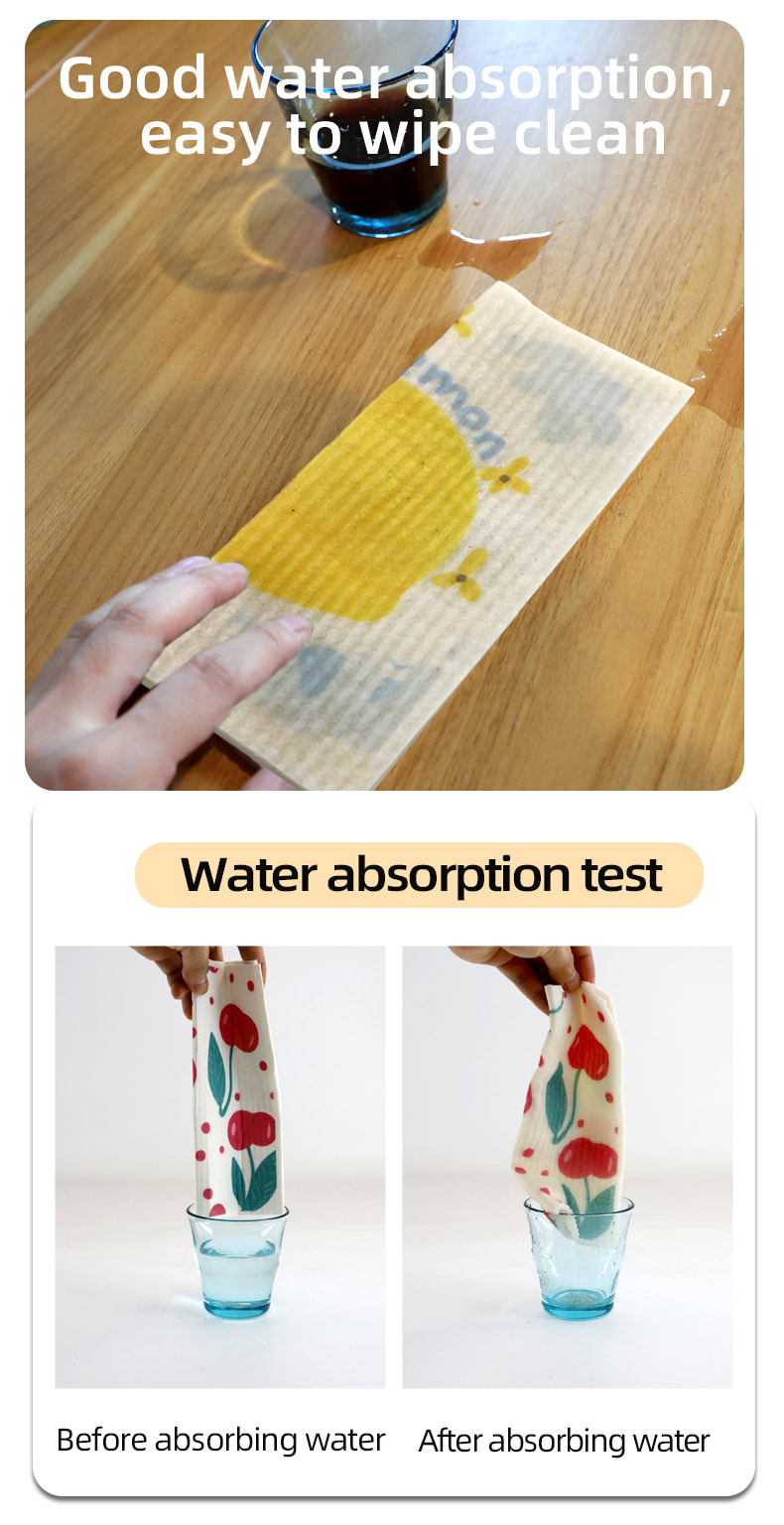 Éadach spúinse ceallalóis nádúrtha, bog maith, ionsú uisce maith, éasca le glanadh, neamhdhíobhálach don chomhshaol agus díghrádaithe, durable, tirim agus fliuch, gan eagla ar ola