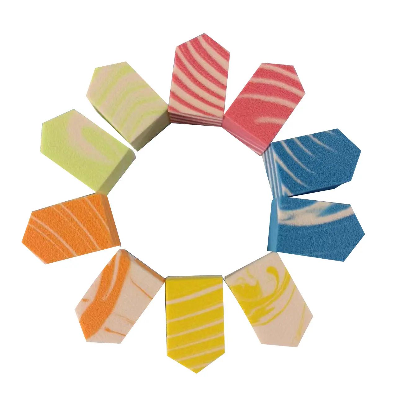 Puff Púdar: Is uirlis smididh é, púdar ginearálta, agus beidh ábhair puff púdar, cadás ly, agus veilbhit, a úsáidtear chun teagmháil a dhéanamh le bunús agus cosmaidí, sa bhosca púdar. Feidhm: Tá Puff Púdar Spúinse níos oiriúnaí le húsáid uisce, áisiúil agus aonfhoirmeach chun bunús leachtach a bhrú ar shiúl. Déanann an cruth triantánach sé éasca le cúinne na súl agus na srón agus áiteanna eile a smearadh. Tá puff púdar fliuch agus tirim go ginearálta ciorclach nó dronuilleogach, cibé acu atá fliuch nó nach ea, is féidir púdar fliuch agus tirim ar an duine. Conas é a úsáid: 1. Ar dtús, cuir an uachtar i bhfeidhm ar fud d'aghaidh, ag tosú leis an forehead agus leicne, agus coirnéil do bhéal agus smig ina dhiaidh sin. 2. Ansin, bain úsáid as taobh amháin den puff púdar ciorclach chun an scaradh a bhrú ar shiúl, san ord ina gcaithfidh tú a bhrú ón taobh istigh go dtí an taobh amuigh. Má bhrúnn tú an puff púdar le do mhéar innéacs agus é a bhrú amach ag an am céanna, cuirfear chun cinn fiú ionsú agus nascáil na deighilte. 3. Ansin, fillte an puff púdar ina dhá leath, tumadh i roinnt uachtar leithlisiú, agus go réidh brúigh an taobh na srón agus coirnéil an bhéil. Ar deireadh, cuir méid beag den uachtar i bhfeidhm ar an bpúdar puff agus brúigh go réidh é in aghaidh an eyelid.