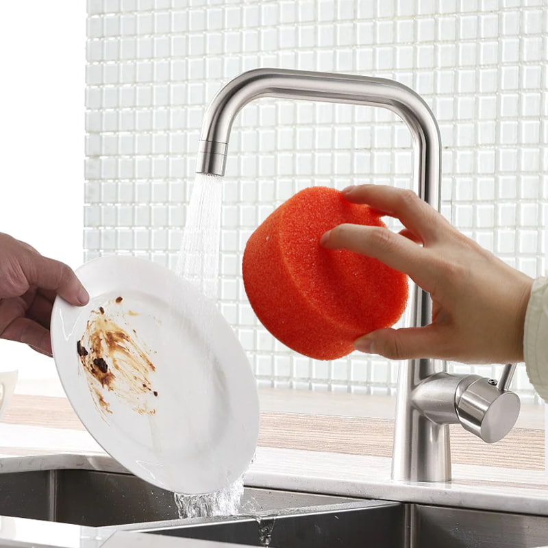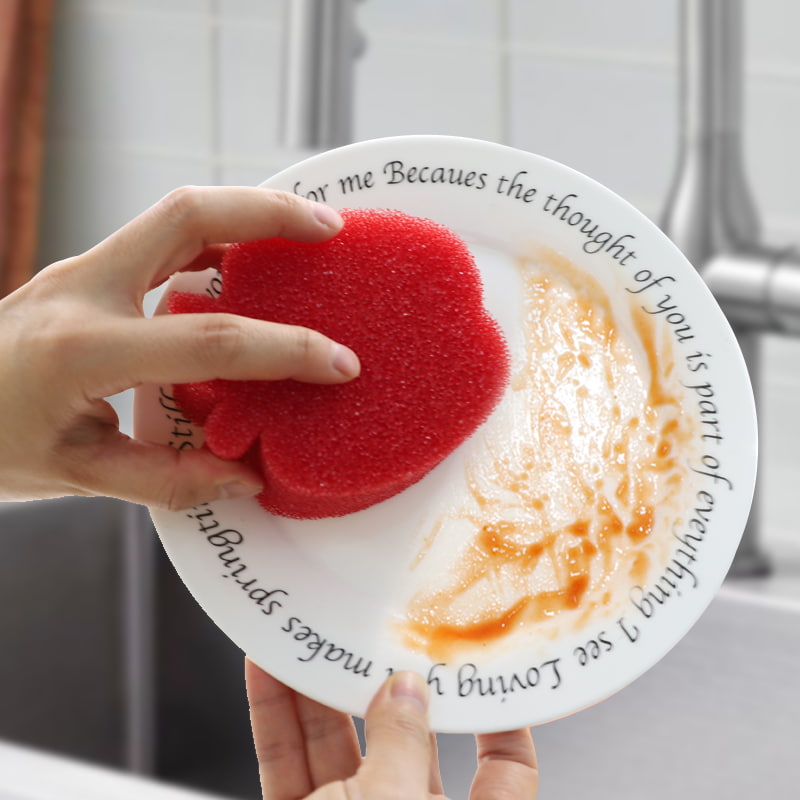 Bogann nuair a nochtar uisce te: Nuair a bhíonn an teocht an uisce os cionn 32 ℃, éiríonn an spúinse bog go tapa agus is féidir leis dromchlaí íogair a ghlanadh go réidh (cosúil le bratuithe pota neamh-bata, earraí gloine, torthaí), ag seachaint scratches.