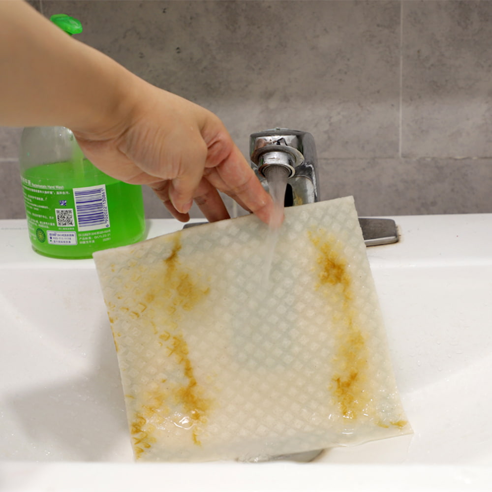 Baint ola ard-éifeachtúlachta: Is féidir leis an struchtúr ola a adsorb go tapa. Nuair a úsáidtear é i gcomhcheangal le gallúnach mhias, tá cumhacht glantacháin den scoth aige agus is féidir leis an scannán ola ar miasa agus na marcanna scorch ar bun an phota a bhaint go héasca.